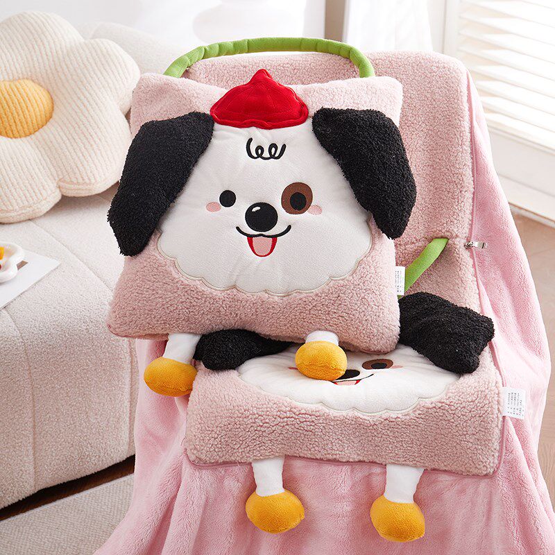 手提卡通狗抱枕被子两用学生宿舍B午睡空调毯女孩生日礼办公室靠