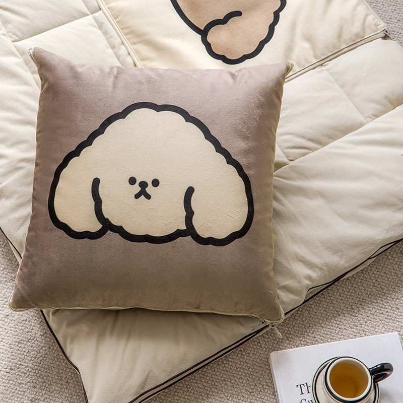 线条小狗抱枕被子二合一枕头毯子两用车载午睡被家用沙发空调