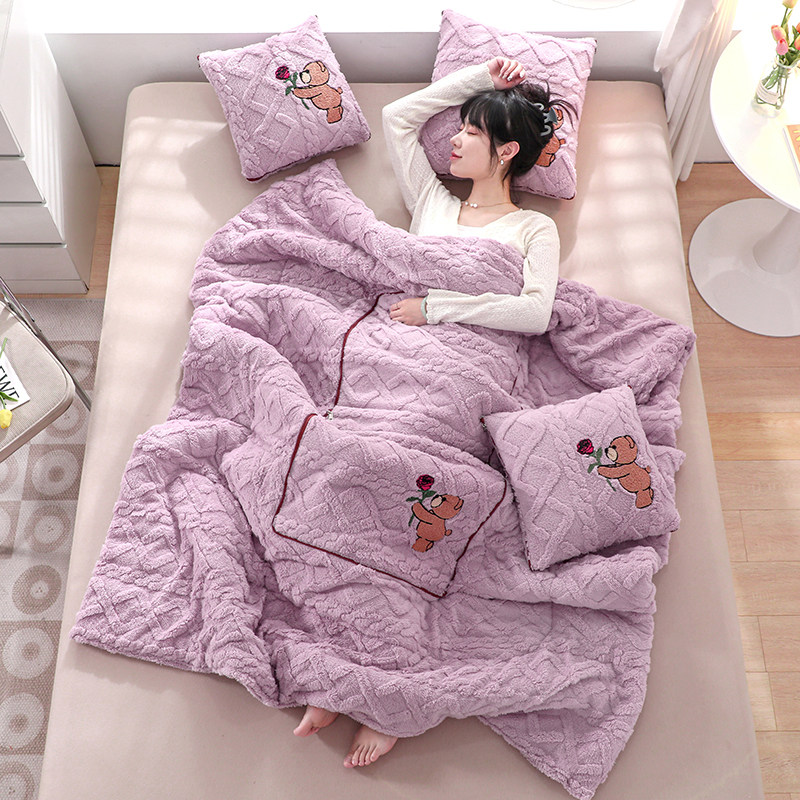 加厚牛奶绒抱枕被子两用沙发靠垫枕头被办公室午睡折叠空调被盖被