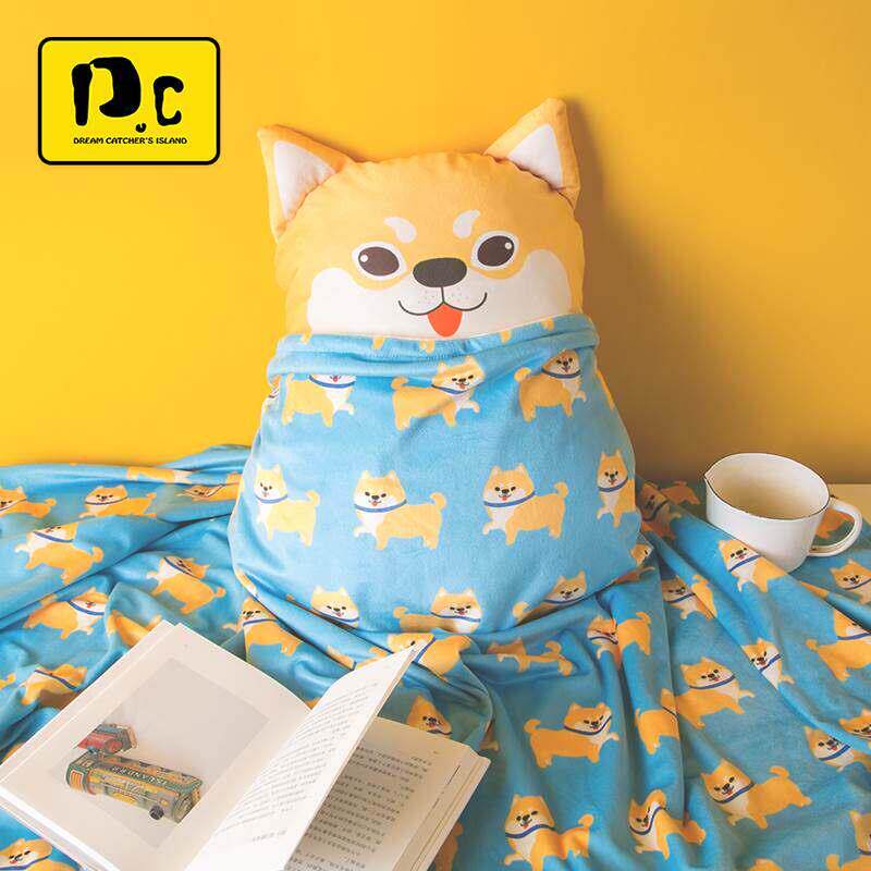 carihome呜呜狗可爱卡通抱枕毯二合一办公室车内午睡空调抱枕被