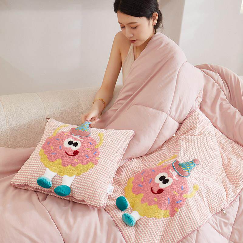 速发办公室午睡空调被刺绣可爱小清新is多功能抱枕被子沙发靠垫
