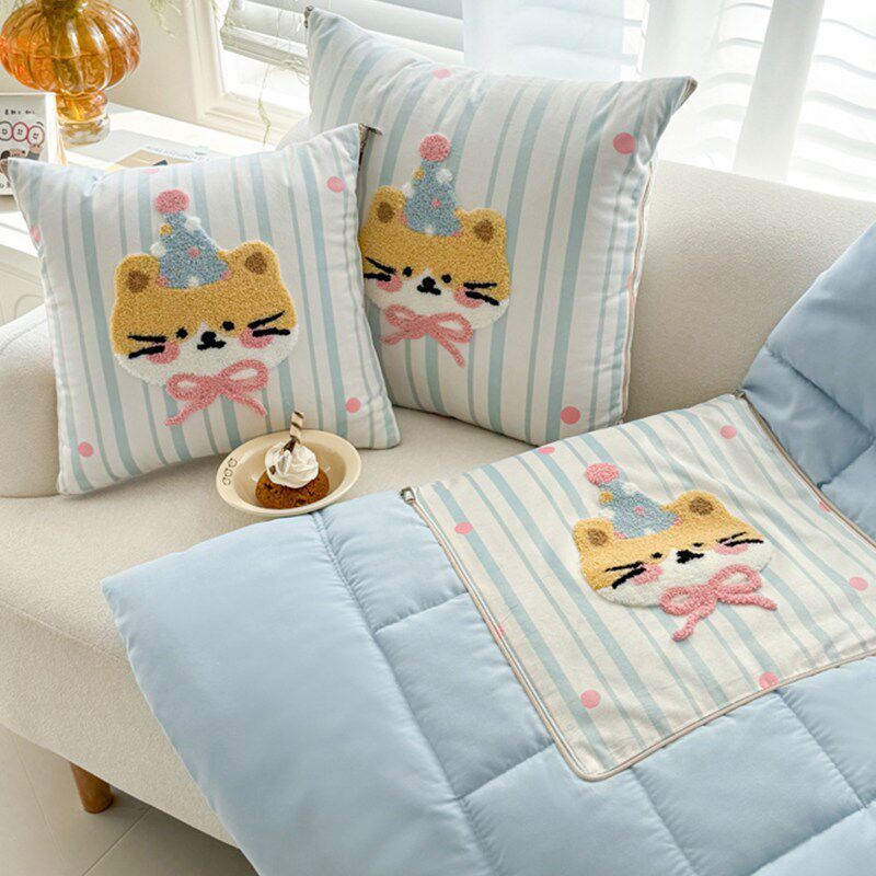 全棉色织抱枕被子两用二合一y午休空调被幼儿园学生午睡纯棉夏凉