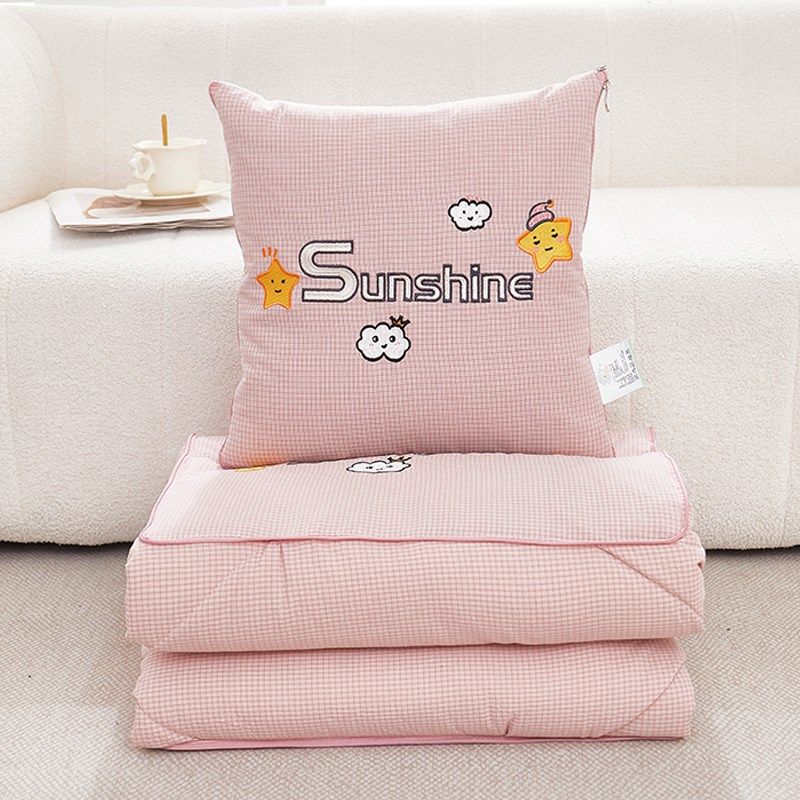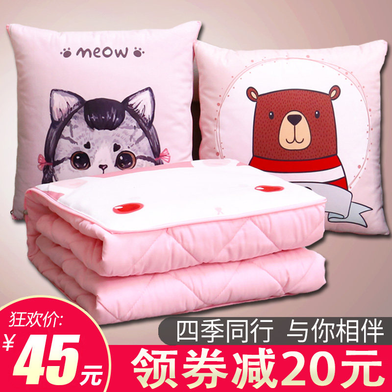 新款卡通全棉抱枕被子两用办公室午睡空调夏凉毯汽车Y折叠靠垫纯
