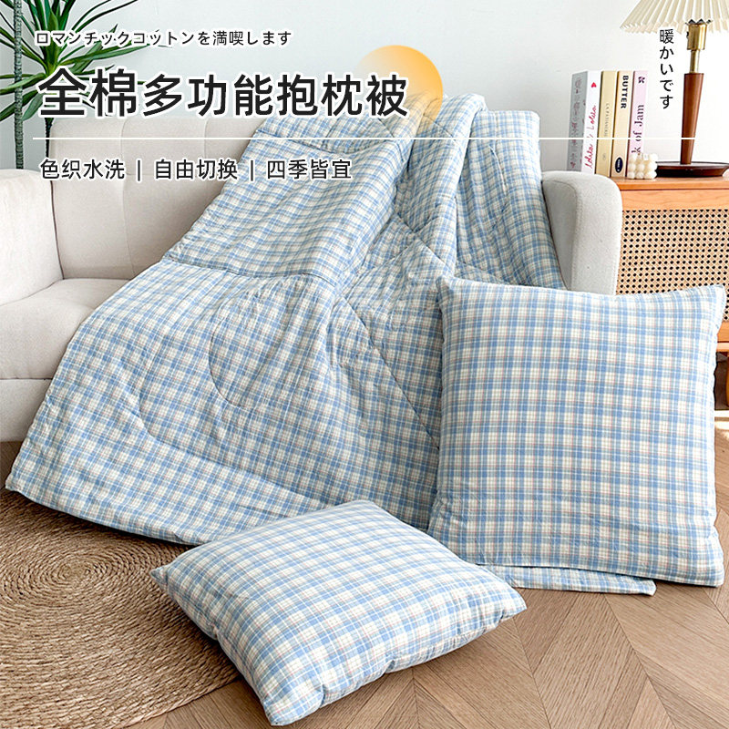 A类全棉双层纱抱枕被两用办公车载靠垫被二合一午睡多功能空调被