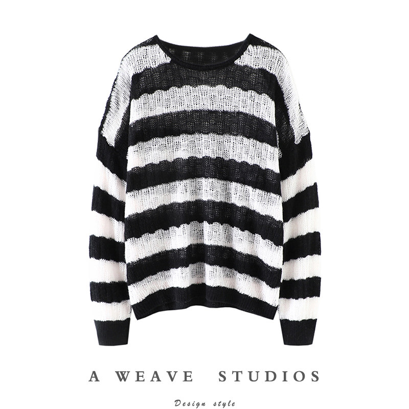 狂赞!仙仙的气质~镂空羊绒衫女圆领纯羊绒宽松针织空调防晒罩衫