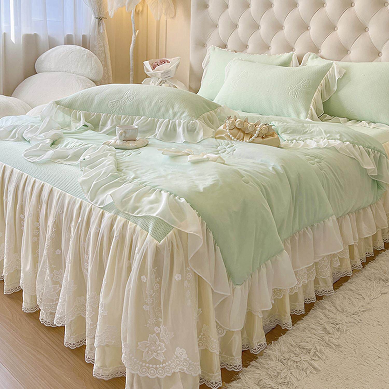 A类冰岛凉感丝冰丝凉席四件套三件套夏季公主风床裙可机洗空调凉