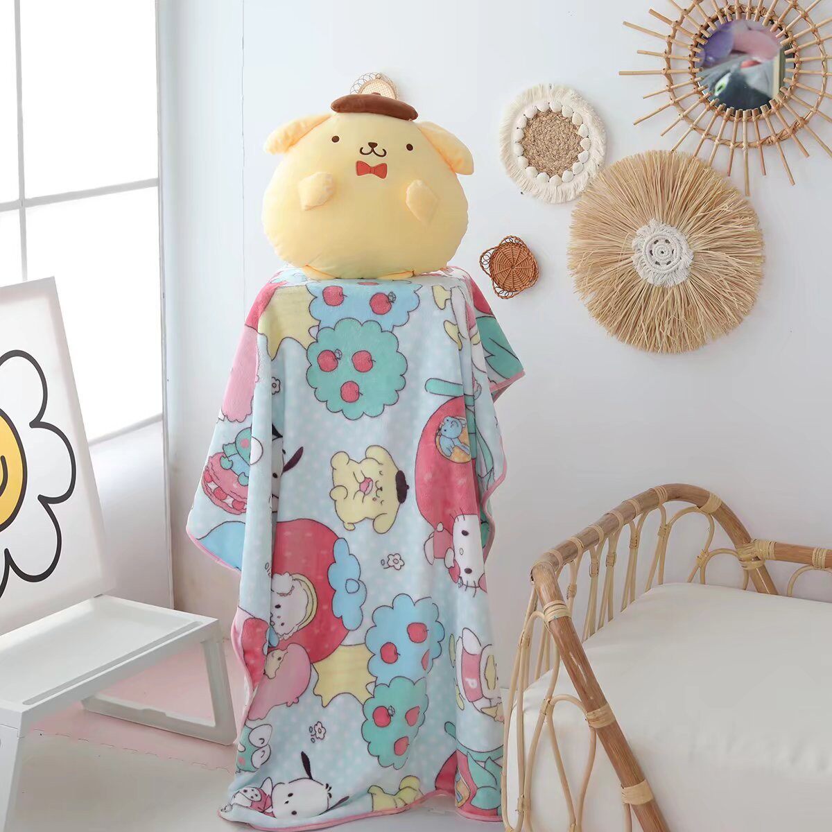 卡通布丁狗毛绒抱枕靠垫空调毯被子两用办公室毯子午休午睡盖毯