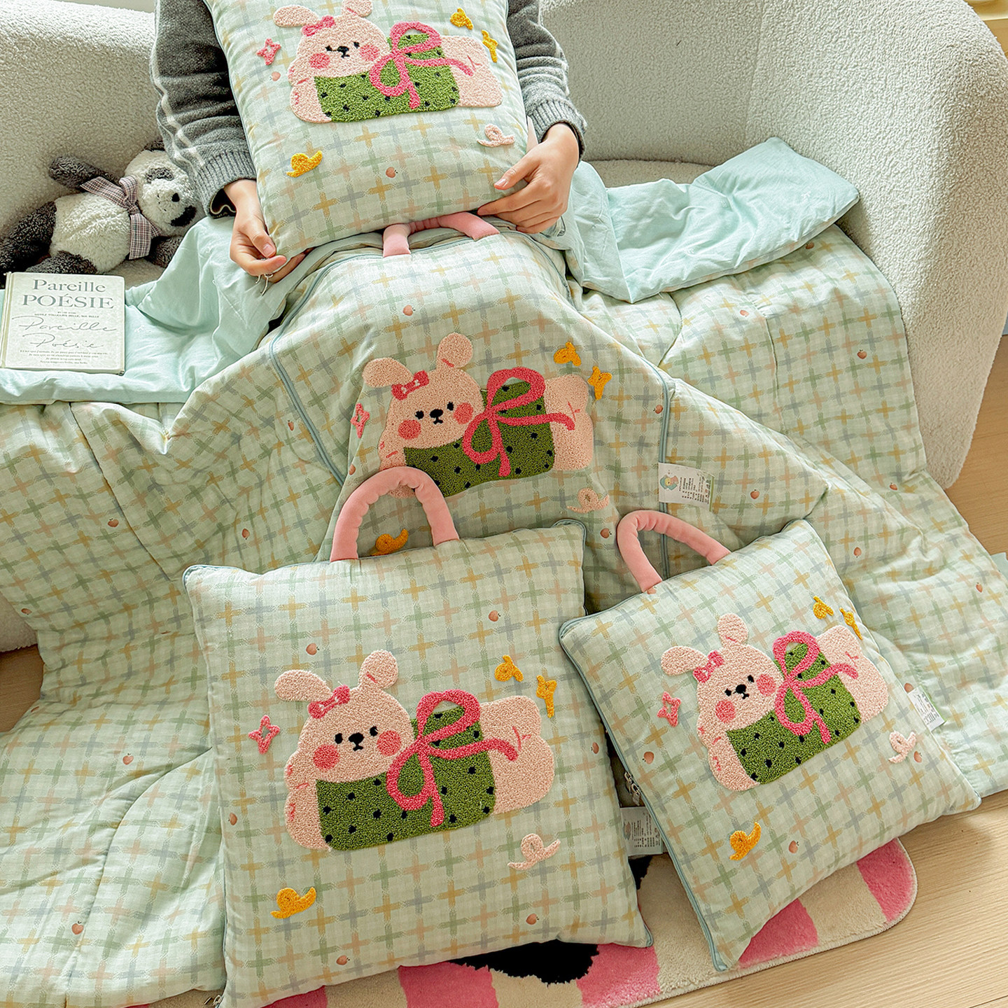全棉兔子抱枕被子两用车载靠枕可爱沙发盖毯四季学生宿舍空调被夏