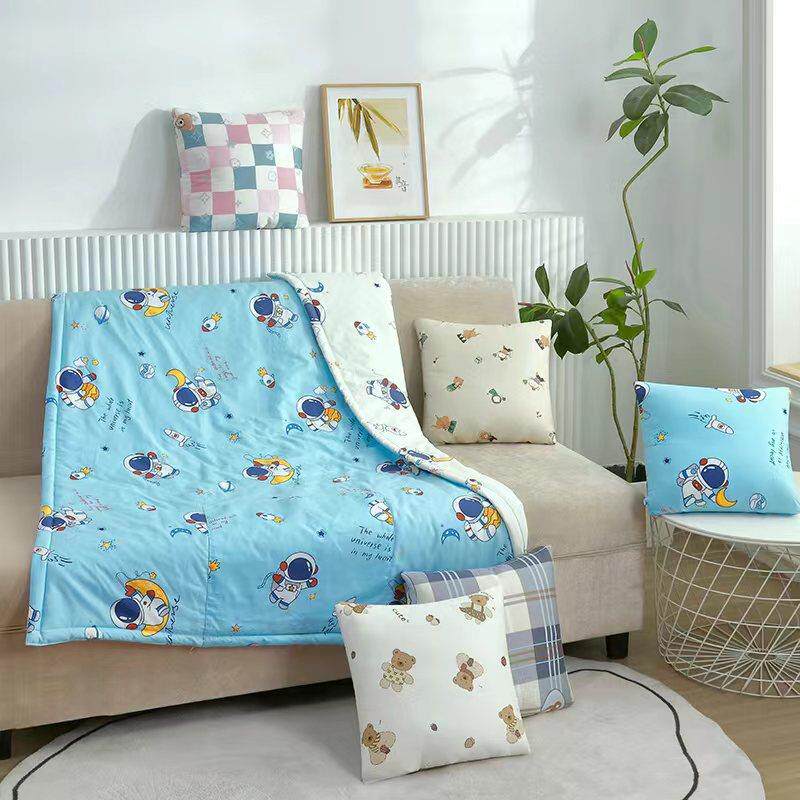 直销新款直播带货主推无拉链纯棉抱枕被两用儿童午睡空调被办公室