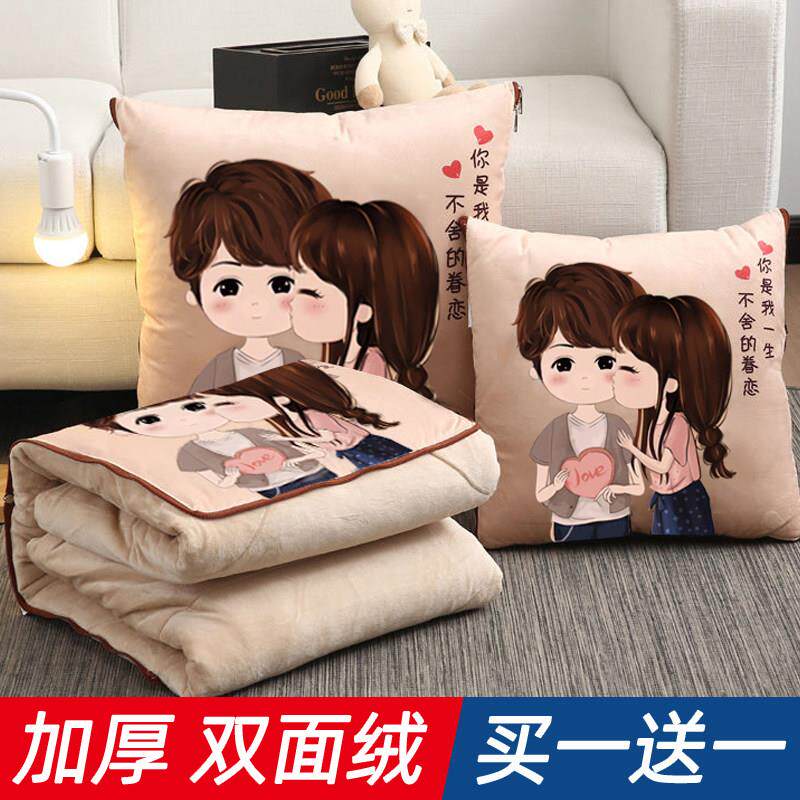 卡通抱枕被子两用加厚加绒汽车载靠垫折叠枕头被办公室午睡空调被