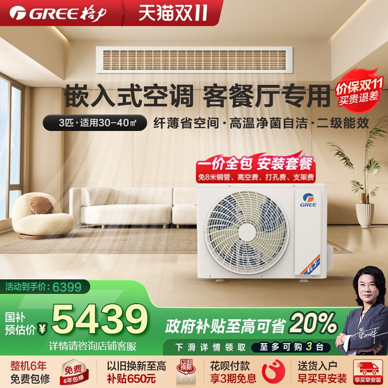 Gree/格力中央空调家用客厅风管机3匹一拖一冷暖变频隐藏卧室C3