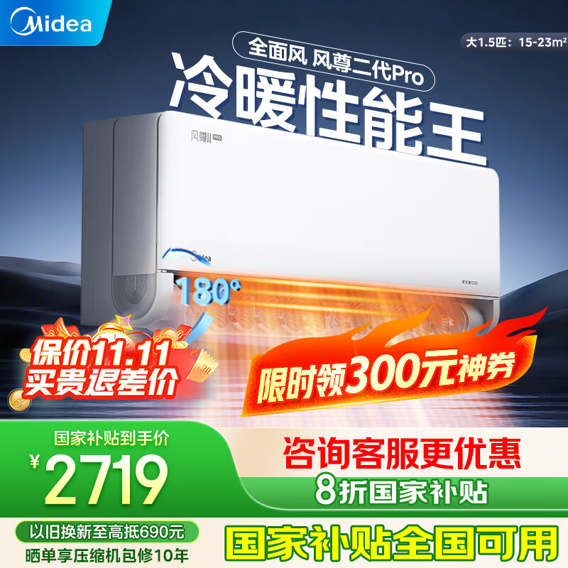 美的空调 风尊 全面风 新一级能效 变频冷暖 环绕风家用空调挂机 以旧换新 家电国家补贴20% 大1.5匹 一级能效 新升级 风尊二代Pro