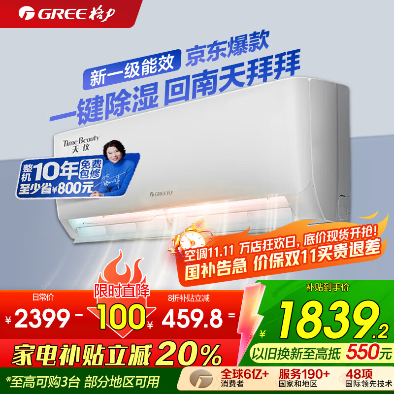 格力(GREE)天仪 新一级能效 变频冷暖 56℃净菌自清洁 家用节能壁挂式卧室空调挂机 以旧换新 大1匹 一级能效 天仪挂机 格力