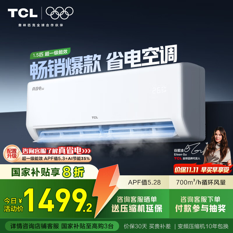 TCL空调1.5/2匹 真省电SE 空调挂机 超一级能效 变频冷暖 壁挂式卧室挂机 以旧换新空调 1.5匹 一级能效 P1
