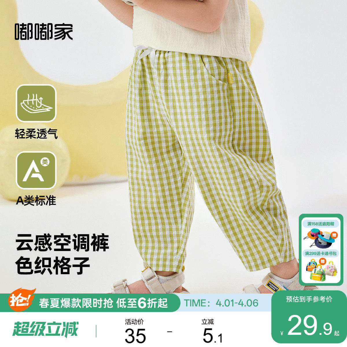 嘟嘟家儿童夏季防蚊裤男童薄款空调裤女童束脚针织格子裤空调裤子