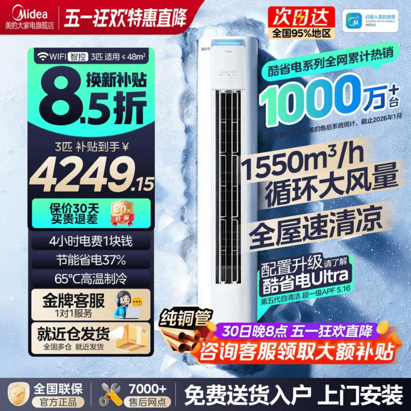 【客厅神机】美的空调立式柜机3匹4匹一级能效家用冷暖酷省电pro