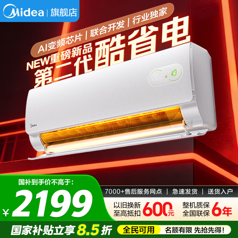 美的(Midea)空调大1.5匹挂机酷省电二代Pro新一级能效变频节能冷暖两用壁挂式卧室空调防直吹低噪WiFi智控补贴 酷省电二代 大1匹 海思AI变频芯片 冷热都省电