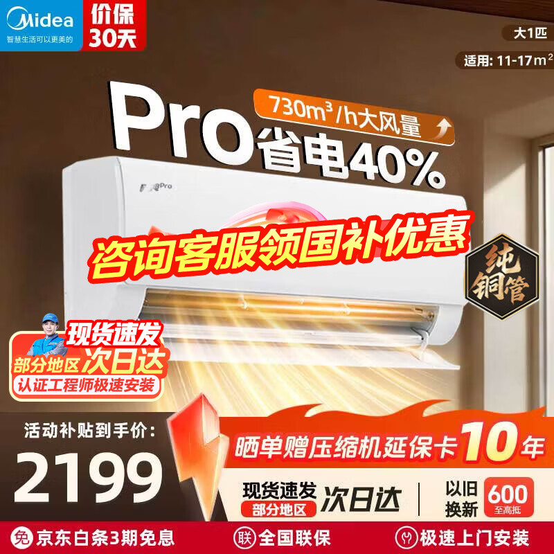 美的(Midea)国家补贴15% 酷省电二代PRO大1.5匹 空调挂机 新一级能效 ultra 变频节能省电冷暖家用卧室壁挂式 酷省电Pro 一级能效 大1匹