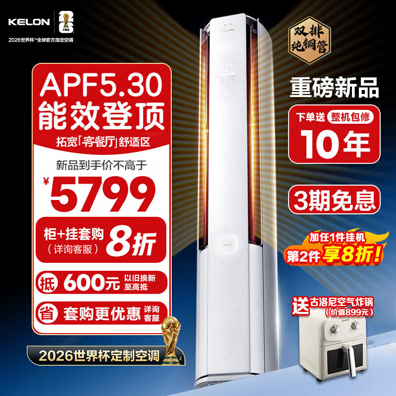 科龙(KELON)科龙空调大3匹柜机 海信出品 云朵猫Ultra 世界杯定制 智能语音新一级变频 客厅立柜式 国家补贴 大3匹 一级KFR-72LW/QS1Ultra