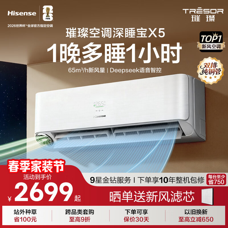 海信(Hisense)空调深睡宝X5 世界杯定制空调 大1.5匹 AI洁净新风空调 DeepSeek 语音智控 国家补贴 KFR-35GW/X5E1-1