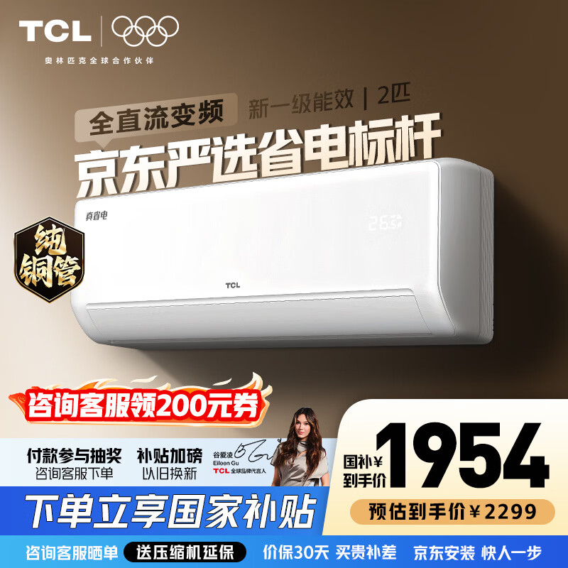 TCL空调1.5/2匹真省电 纯铜管 空调挂机 一级能效 变频冷暖 壁挂式卧室挂机 以旧换新 2匹 一级能效真省电SE