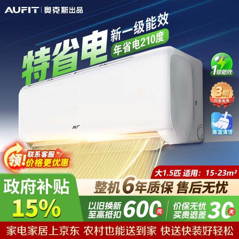 AUFIT空调奥克斯AUX出品1匹大1.5匹2匹挂机新一级能效变频冷暖家用卧室壁挂式防直吹除菌自清洁以旧换新 特省电 大1.5匹 一级能效防直吹自清洁【WIFi款】
