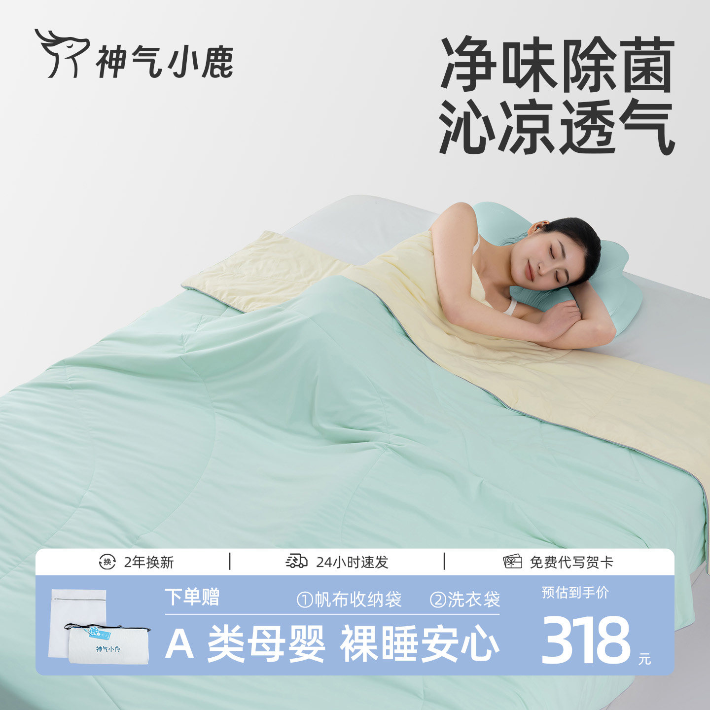 神气小鹿茶韵夏凉被可水洗夏被凉感控温空调亲肤被抑菌防螨透气