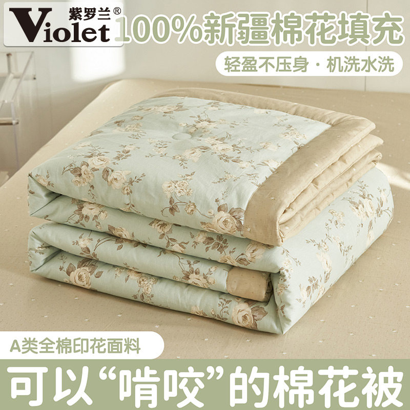 紫罗兰里外全棉卡通印花新疆棉花夏被纯棉空调被四件套学生夏凉被