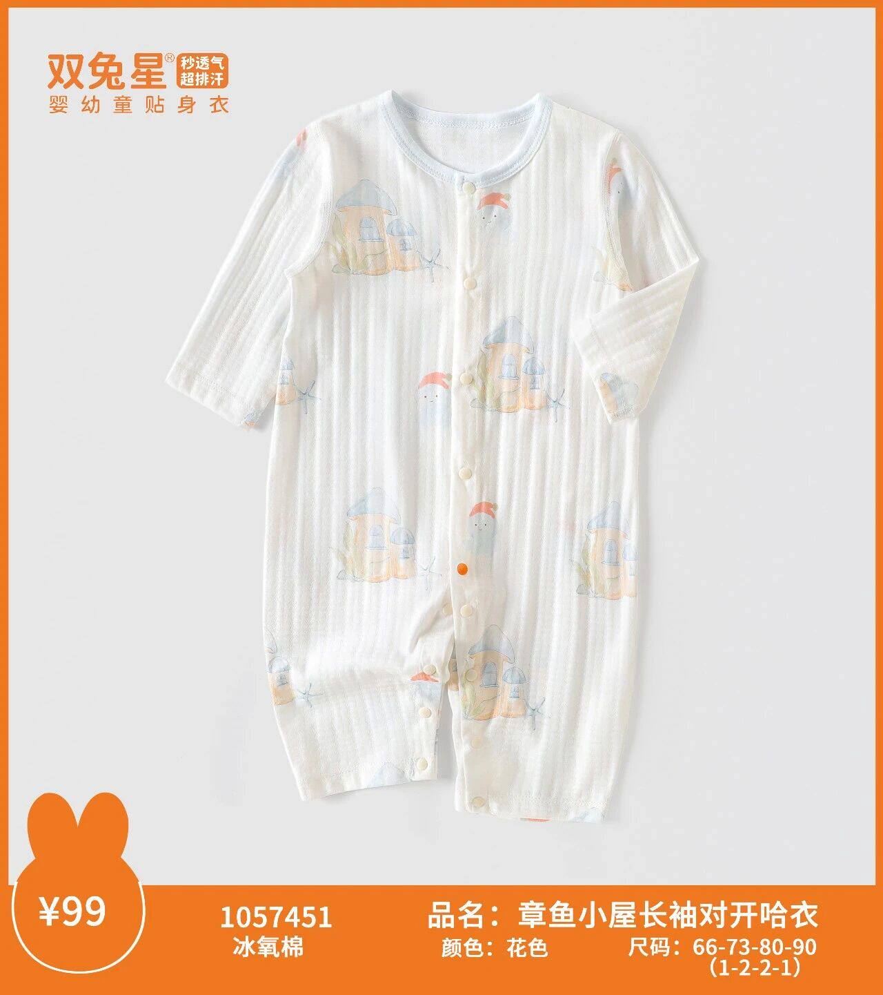 双兔星26夏婴儿超薄全棉连体衣宝宝对开衣服婴儿纯棉长袖空调服