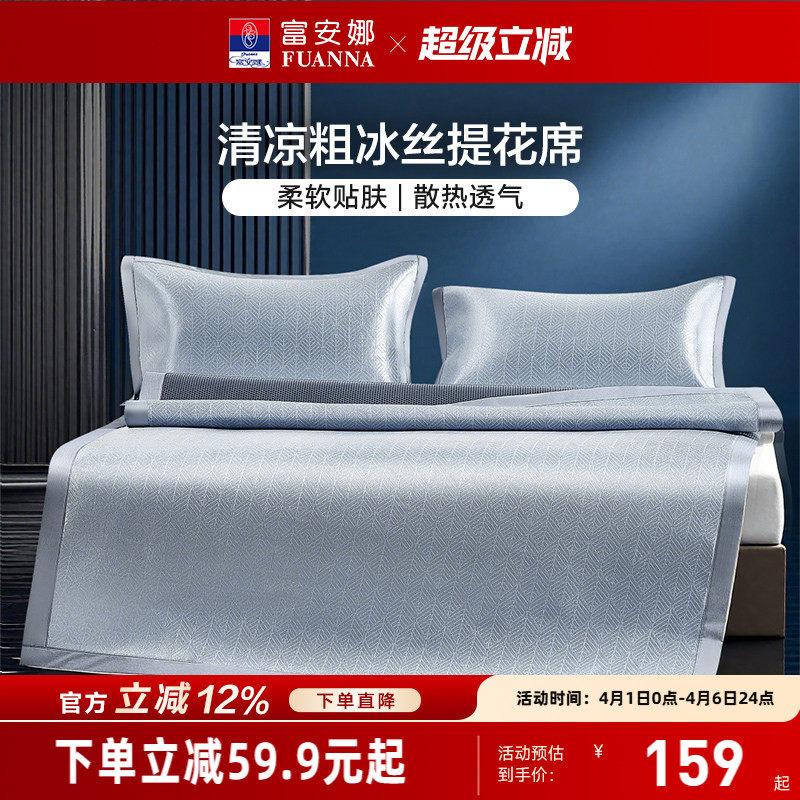 富安娜冰丝凉席床垫粗冰丝席夏季空调软凉席凉感席床护垫可折叠席