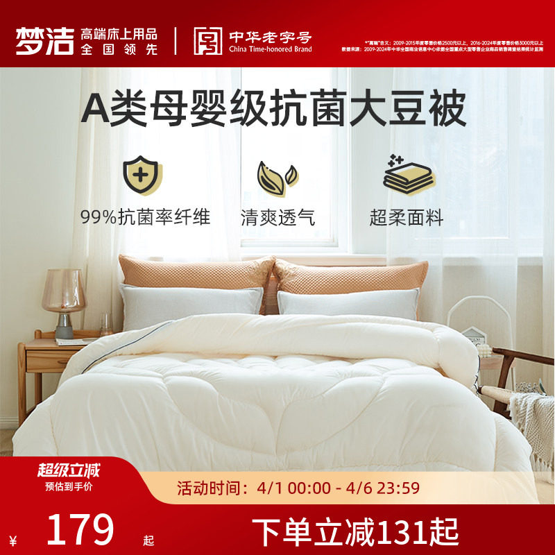 梦洁家纺大豆纤维被子学生宿舍单人被芯抗菌棉被保暖空调被春秋款