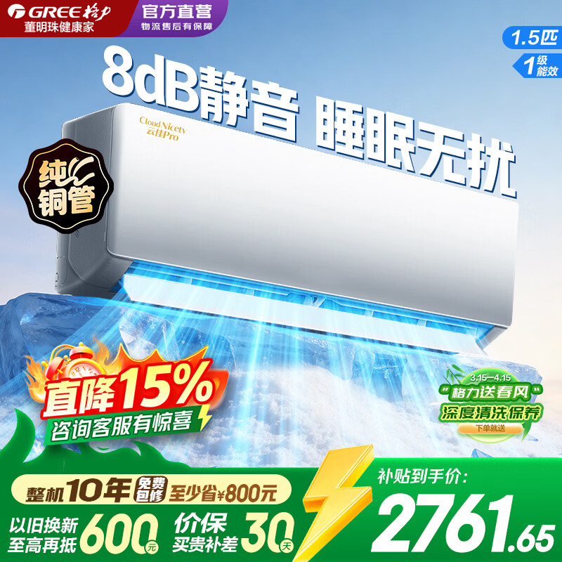 格力空调官方1.5匹云佳pro一级能效挂机正品政府补贴 悦省电同款
