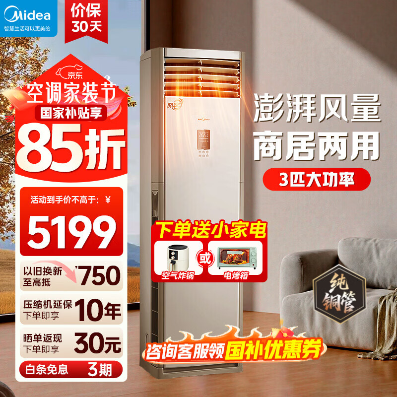 美的(Midea)风客柜机大3匹空调 鲜逸升级款新一级能效变频冷暖空调家用客厅立式独立除湿新款国家补贴以旧换新 风客 大3匹 一级能效风客升级款