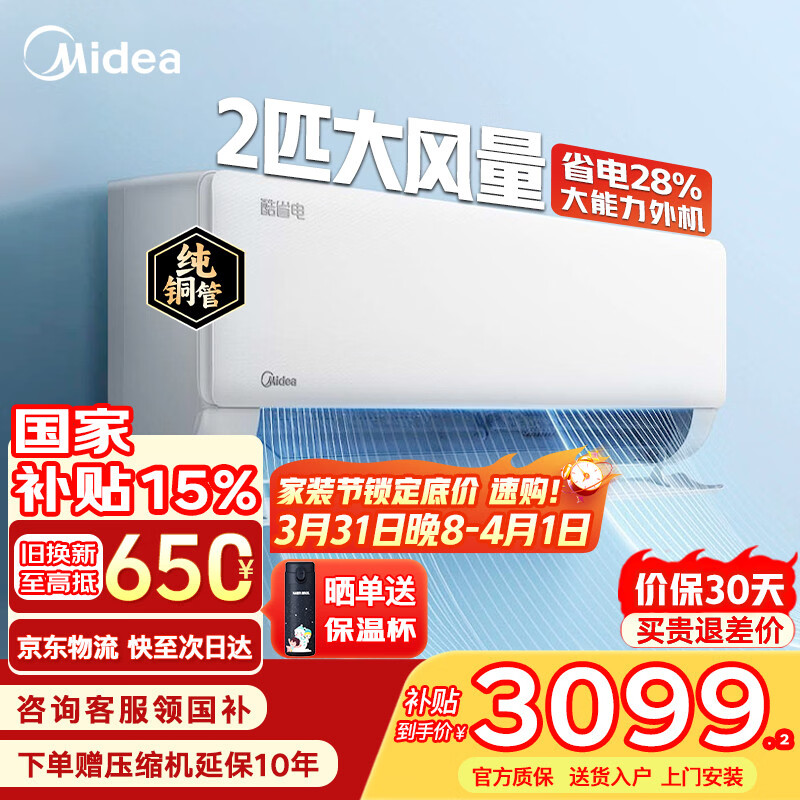 美的空调一级能效家用大2匹变频冷暖挂机酷省电二代官方旗舰店
