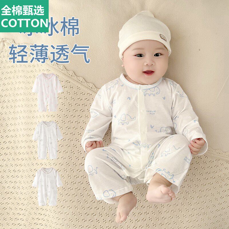 全棉母婴纯棉婴儿连体衣夏季薄款长袖空调服夏天装套装新生儿衣服