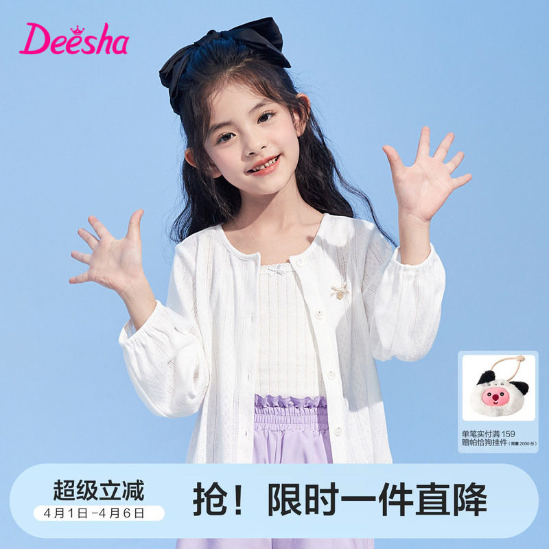 笛莎官方旗舰童装女童针织开衫夏季大童轻薄款外套透气儿童空调衫