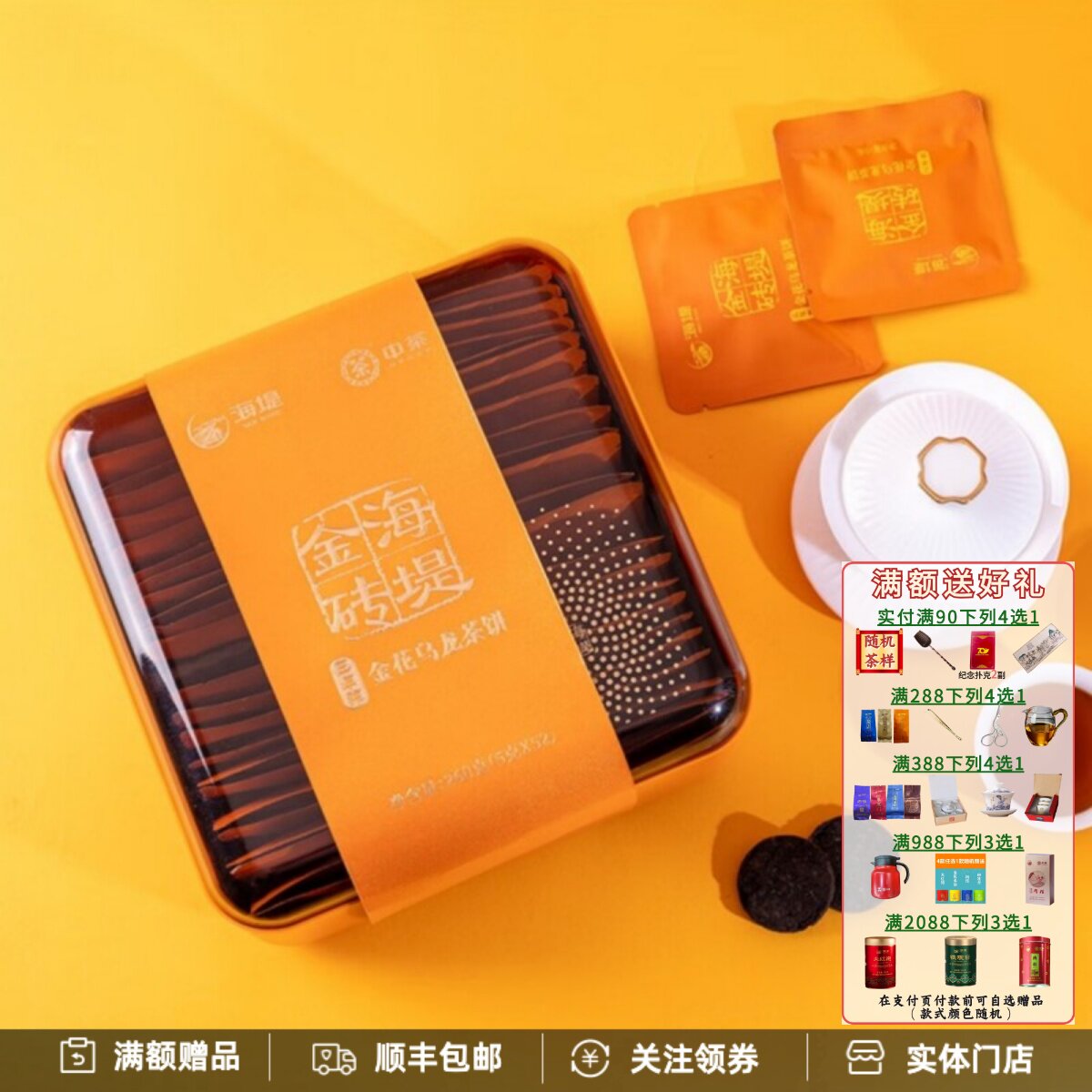 海堤茶叶XTJ3907五年陈金花香橼茶饼礼盒装2024年新品乌龙茶