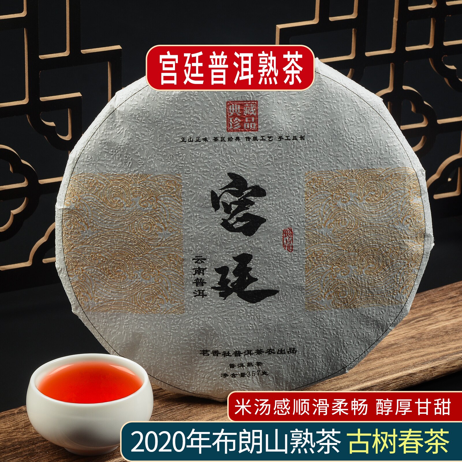 2020年宫廷普洱茶熟茶云南勐海布朗山古树老熟普357g饼茶叶七子饼