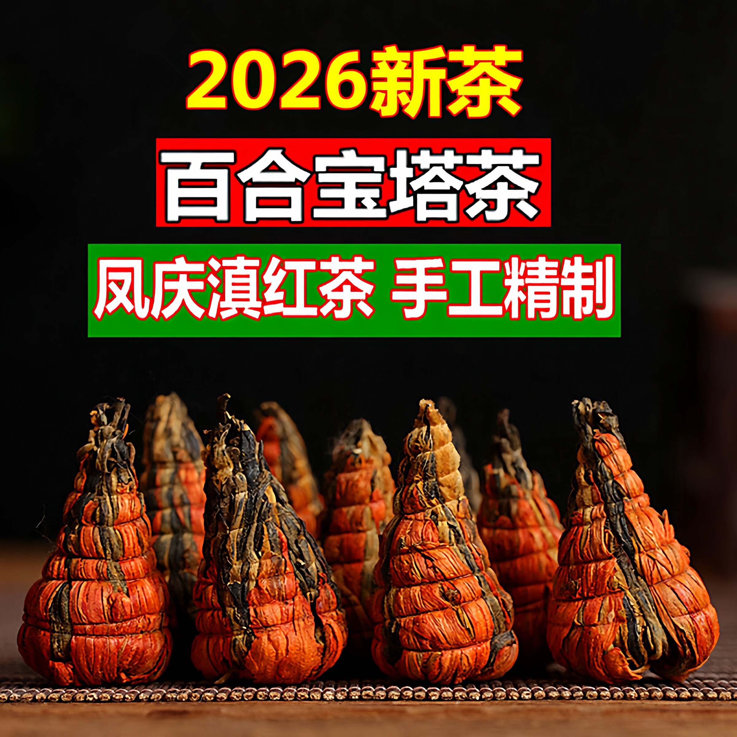 2026新春茶云南凤庆滇红茶手工百合宝塔金芽金丝蜜香工夫茶叶500g