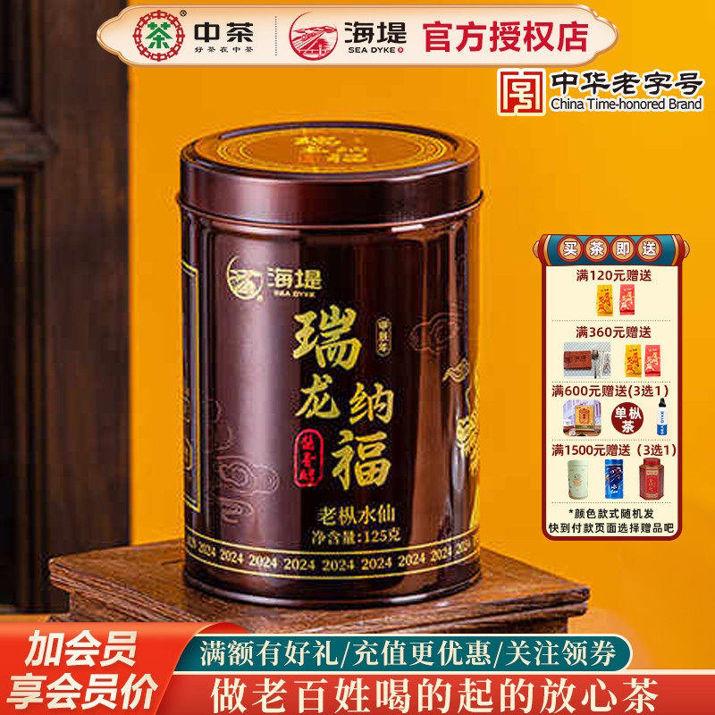 海堤茶叶甲辰年瑞龙纳福酱香醇老枞水仙特级足火125克罐装散茶