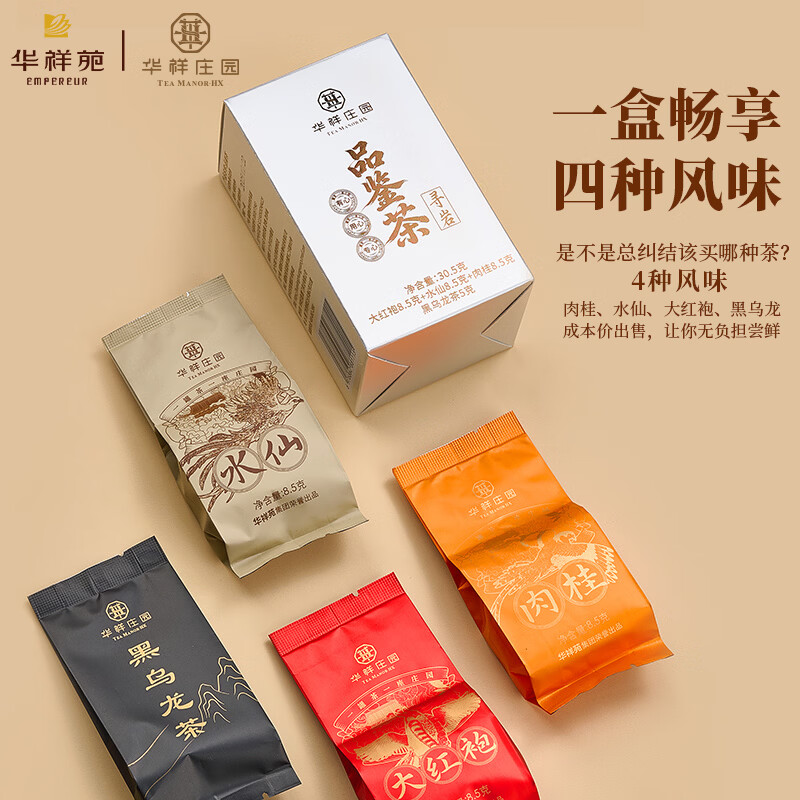 华祥庄园水仙肉桂大红袍组合乌龙茶叶武夷岩茶自饮罐装 同款品鉴装(共4包)