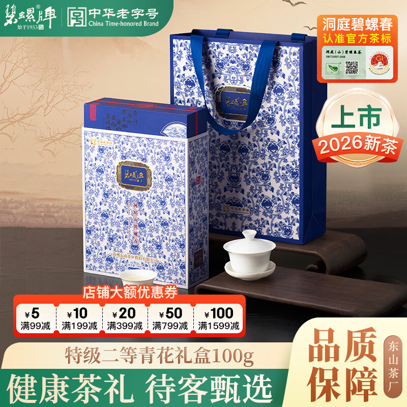 碧螺2026年春茶绿茶青花正宗洞庭碧螺春特级二等100g明前新茶送人礼盒
