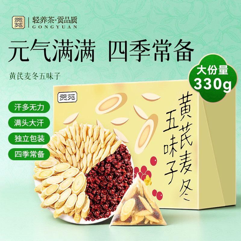 贡苑黄芪麦冬五味子330g大份量泡水喝饮品出汗多止汗茶包养生茶包