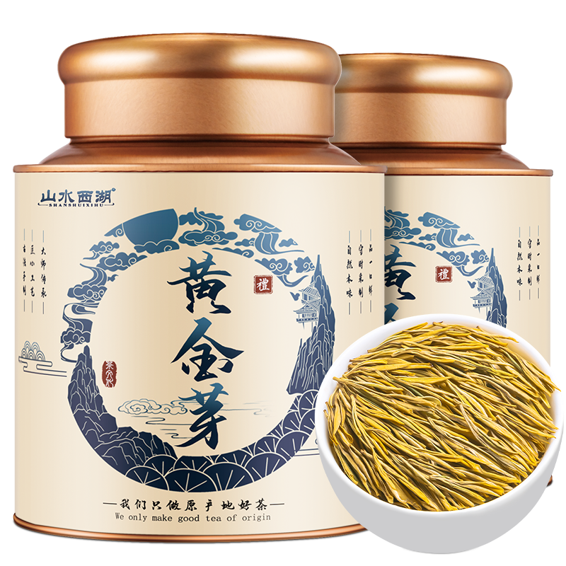 山水西湖 黄金芽茶叶新茶特级安吉奶白茶明前绿茶春茶100g*2罐