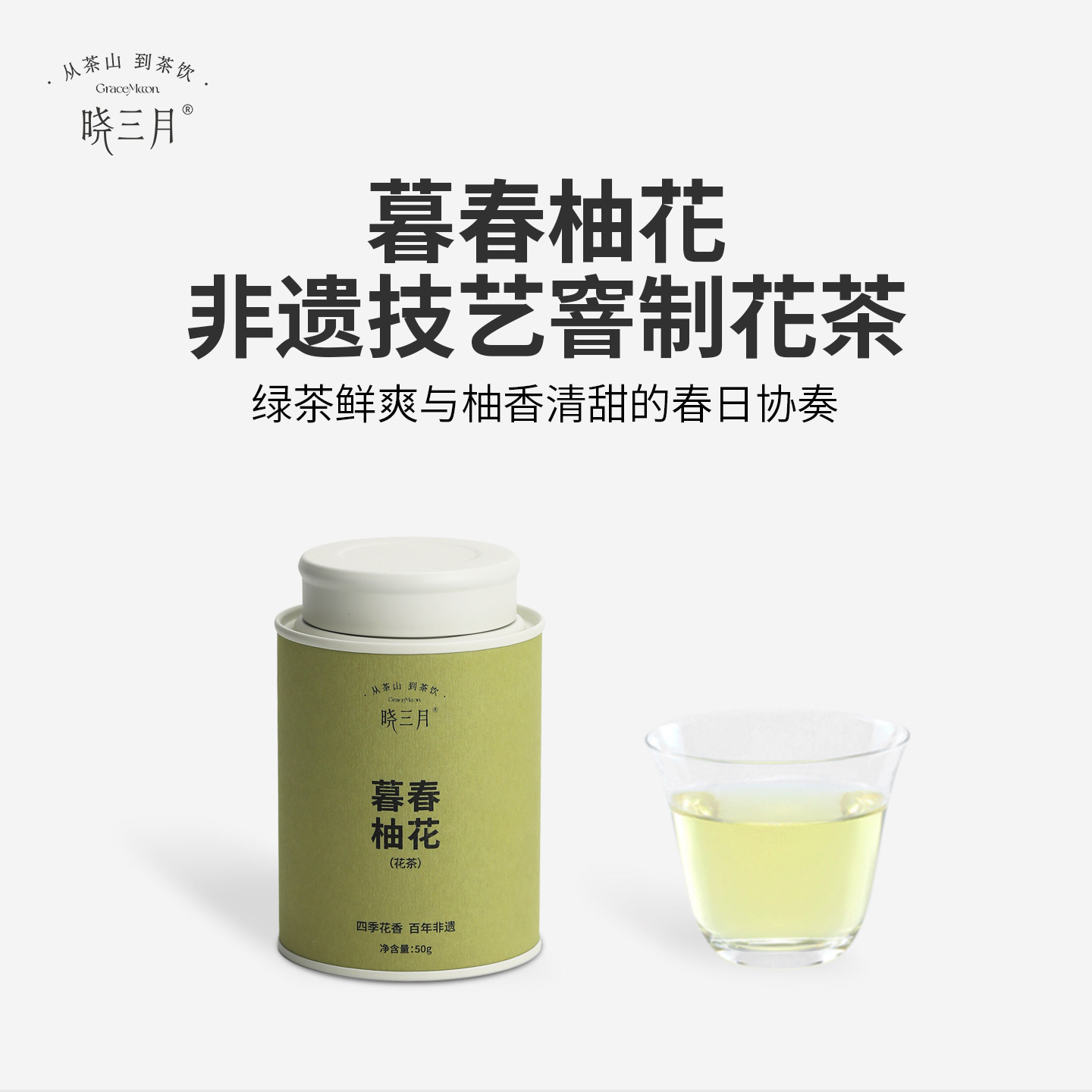 晓三月春茶非遗窨制花茶柚花香绿茶小罐装茶叶送礼春季口粮茶50g