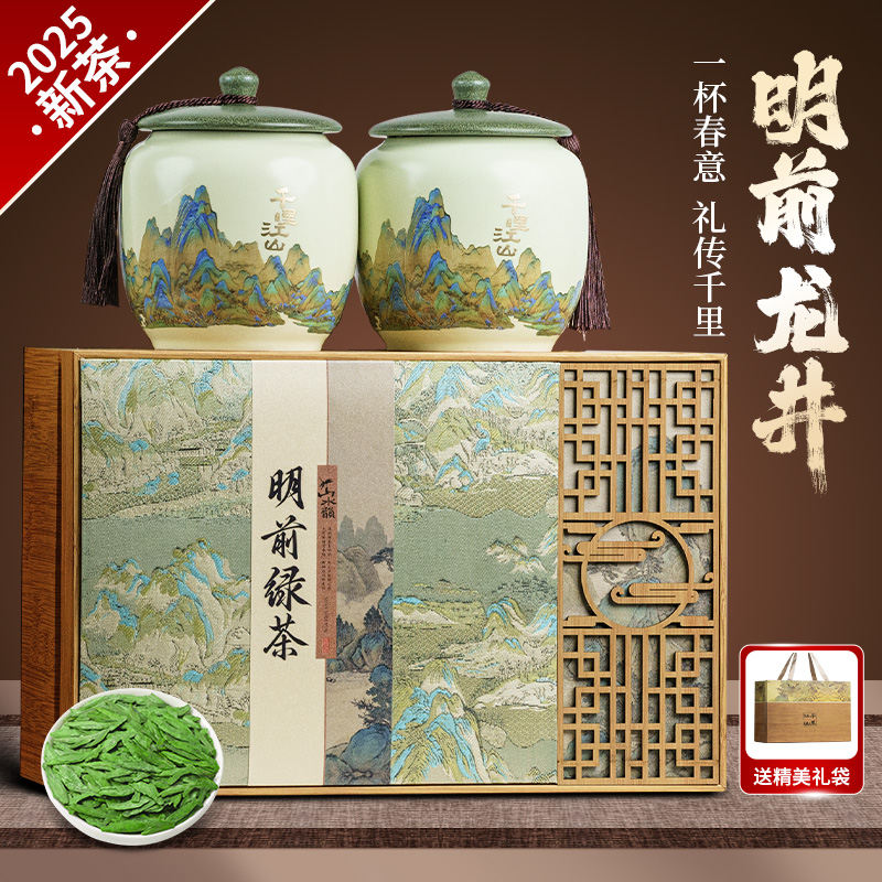 五虎龙井绿茶茶叶2025新茶明前春茶官方正品高档茶送礼长辈礼盒装