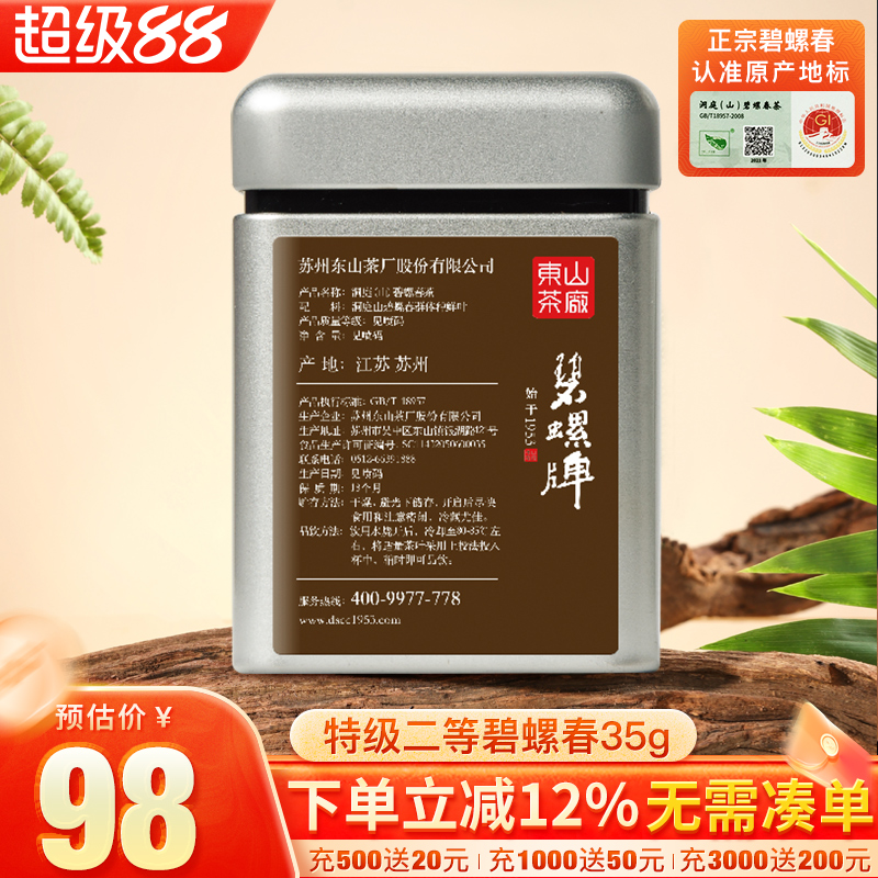 2025新茶春茶碧螺牌苏州洞庭碧螺春罐装明前特级二等茶叶特选35g