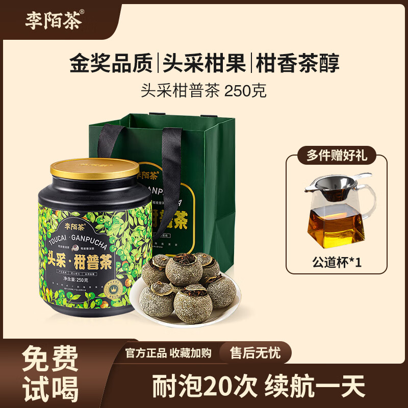 李陌茶小青柑 陈皮普洱熟茶 正宗新会小青柑普洱茶 茶叶礼盒送礼 【360h纯日晒】250g*1罐
