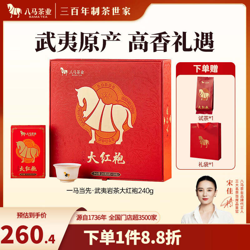 八马茶业 武夷山岩茶 大红袍 乌龙茶 一马当先 中秋送礼茶叶 礼盒装 240g【送试茶+礼袋】