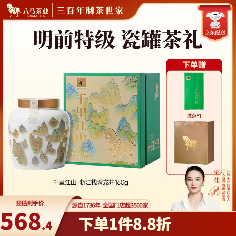 八马茶业 2025新茶春茶 明前特级 浙江龙井绿茶 中秋送礼茶叶 陶瓷罐装 160g【赠试茶+礼袋】